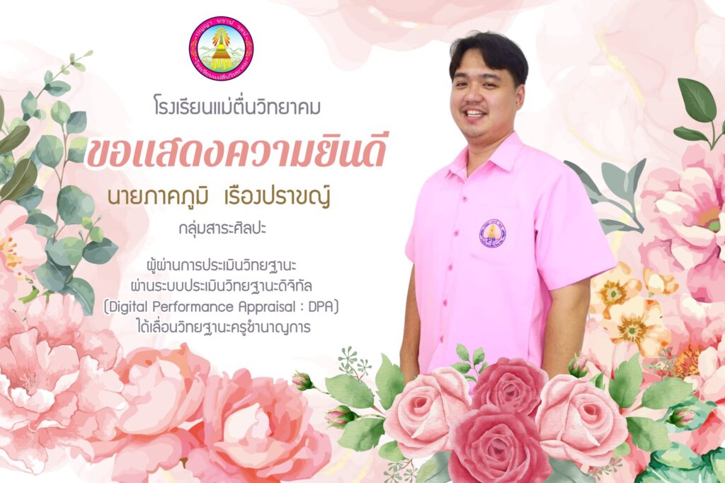 โรงเรียนแม่ตื่นวิทยาคม ยินดีกับข้าราชการที่ผ่านการประเมินวิทยฐานะ ผ่านระบบประเมินวิทยฐานะดิจิทัล (Digital Performance Appraisal : DPA) ได้เลื่อนวิทยฐานะครูชำนาญการ