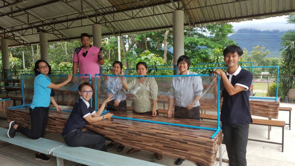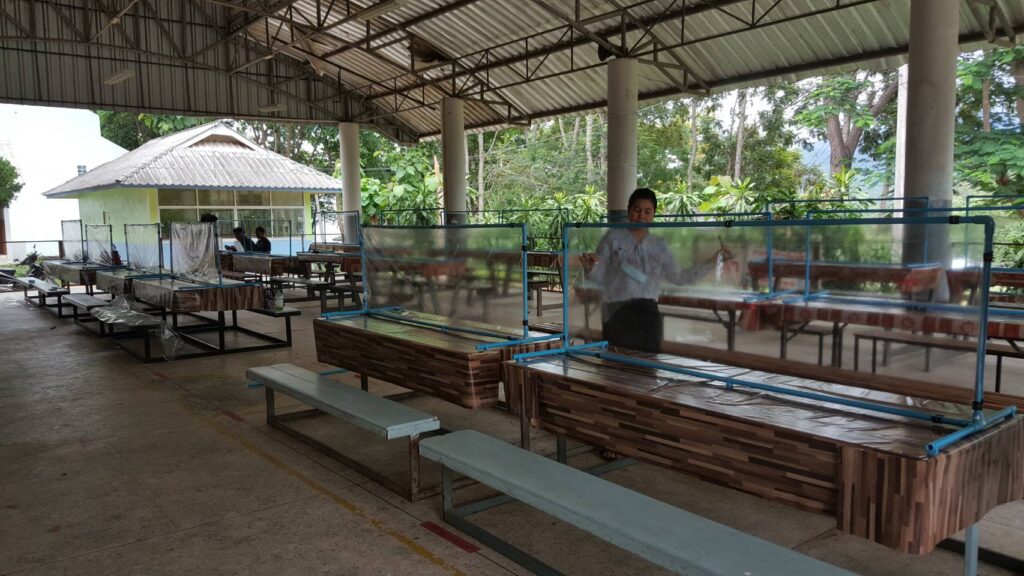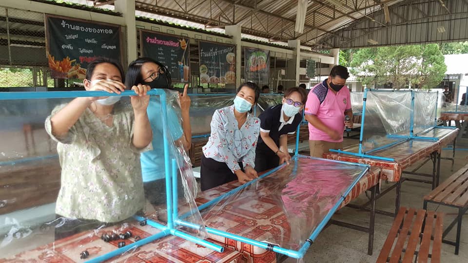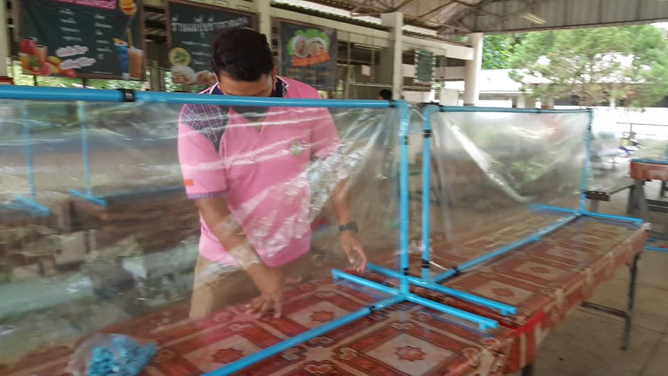 วันที่ 9 มิถุนายน 2564 กลุ่มบริหารทั่วไปโรงเรียนแม่ตื่นวิทยาคมจัดทำที่กั้นบริเวณโต๊ะทานข้าว และจุดยืนเว้นระยะห่าง เพื่อเตรียมความพร้อมตามมาตรการกระทรวงสาธารณสุข ก่อนเปิดภาคเรียนที่ 1 ปีการศึกษา 2564